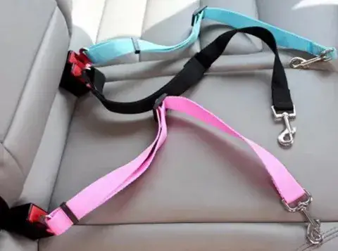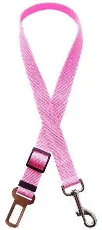 רתמת כלב עבור מושב המכונית המתחבר לאבזם החגורה. צבע ורוד.