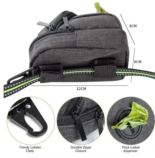 תיק פאוץ לאילוף וחטיפים עם מקום לשקיות הגללים. בעל שתי חללי איחסון.