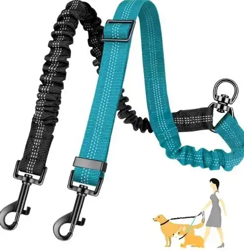 רצועה גמישה לשני כלבים. מחזירה אור בחשיכה.