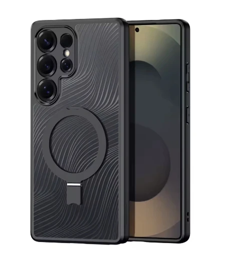 מגן מגנטי עמיד בפני זעזועים לסמסונג S25 אולטרה - שחור שקוף עם ציפוי הידרופובי וטביעות אצבעות | תואם לאביזרים מגנטיים