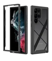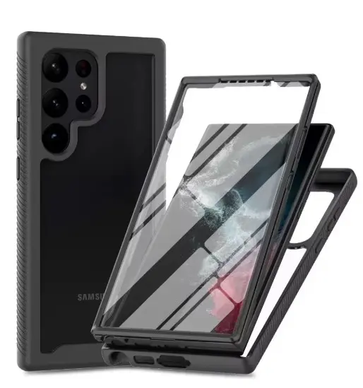 כיסוי טלפון מוגן בפני זעזועים מסגרת פלסטיק קשה TPU וכיסוי אחורי. מתאים לסדרת Samsung Galaxy S22, S23, S24 Ultra.