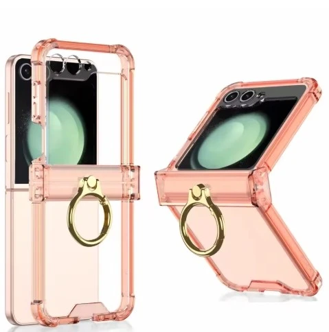 מגן עבור סמסונג פליפ 6 5 6 במקרה שקוף צבעוני קפל טבעת סוגר ארבע בפינה