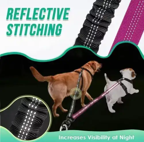 רצועה גמישה לשני כלבים. מחזירה אור בחשיכה.