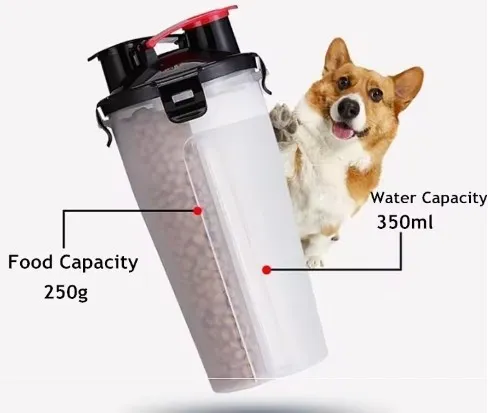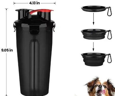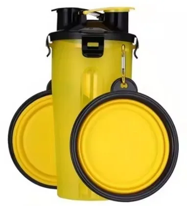 ערכת האכלה ושתיה עבור טיולים עם שני קעריות סיליקון מתקפלות. צבע צהוב.