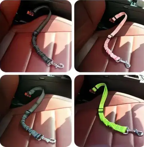 רתמת כלב עבור מושב המכונית המתחבר לאבזם החגורה.