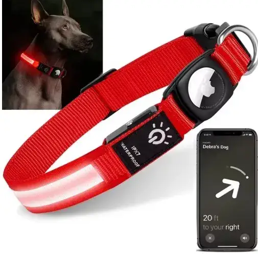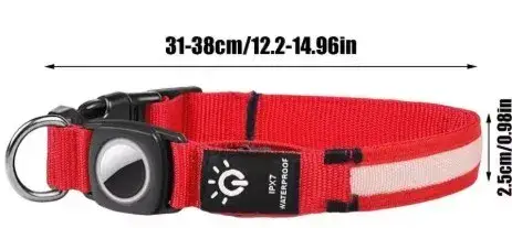 קולר לכלב/חתול בעל 3 מצבי תאורה ועם GPS לאיתור הכלב/חתול. נטען USB. מידה: M. צבע אדום.