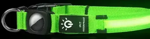קולר לכלב/חתול בעל 3 מצבי תאורה ועם GPS לאיתור הכלב/חתול. נטען USB. מידה:L צבע ירוק