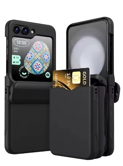 כיסוי טלפון עם חריץ לכרטיסים עבור Samsung Galaxy Z Flip7 FE 5 6 Flip6 Flip5 Flip 6 5 כיסוי קשה מפלסטיק עם ציר מתקפל