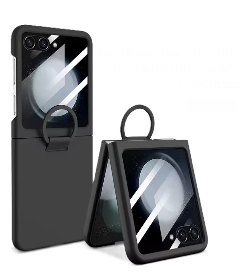כיסוי טלפון מקורי עם מחזיק טבעת מסיליקון נוזלי עבור Samsung Galaxy Zflip7 Z Flip 5 6 מסך זכוכית סרט 2in1 כיסוי בעל עמידות בפני זעזועים