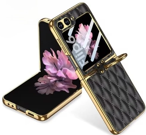 מגן עור עם טבעת עבור Samsung Galaxy Z Flip 6 מסך זכוכית ציפוי קצה קשה עבור קייס Galaxy Z Flip5